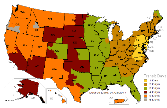 Standard ground transit time estimates
